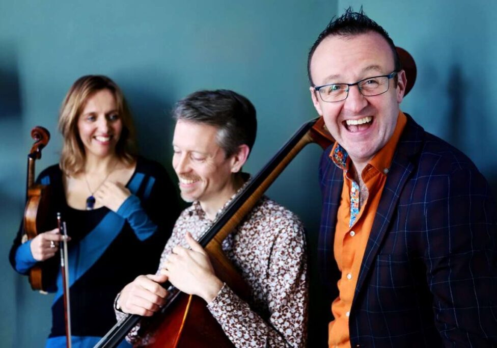 The Far Flung Trio are Katherine Hunka, violin; Dermot Dunne, accordion; and Malachy Robinson, double-bass. The name reflects their sense of fun and the eclecticism in their programming and performances. They are all leading Irish players, and are drawn to this Trio by the sheer joy generated by playing together. This evident rapport is one of the elements that particularly delights audiences.