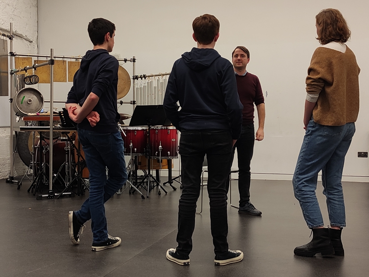 Participants of the the MusicConnects Ensemble Skills Programme working with percussionist Alex Petcu.